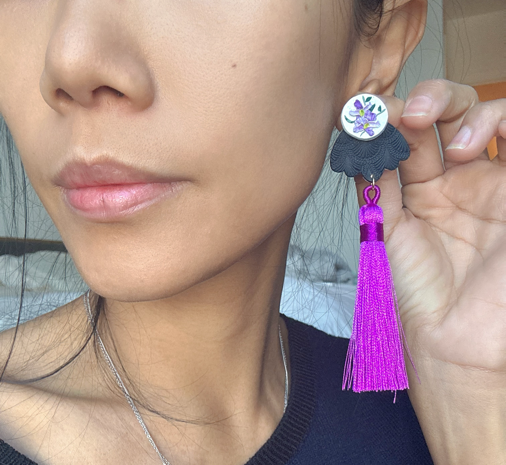 All earrings are handmade, so there's bound to be variations in each piece, making each a unique pair. Please be comfortable with this prior to ordering. Due to different monitors and browsers, actual colours may also vary slightly in colour seen on your monitor.