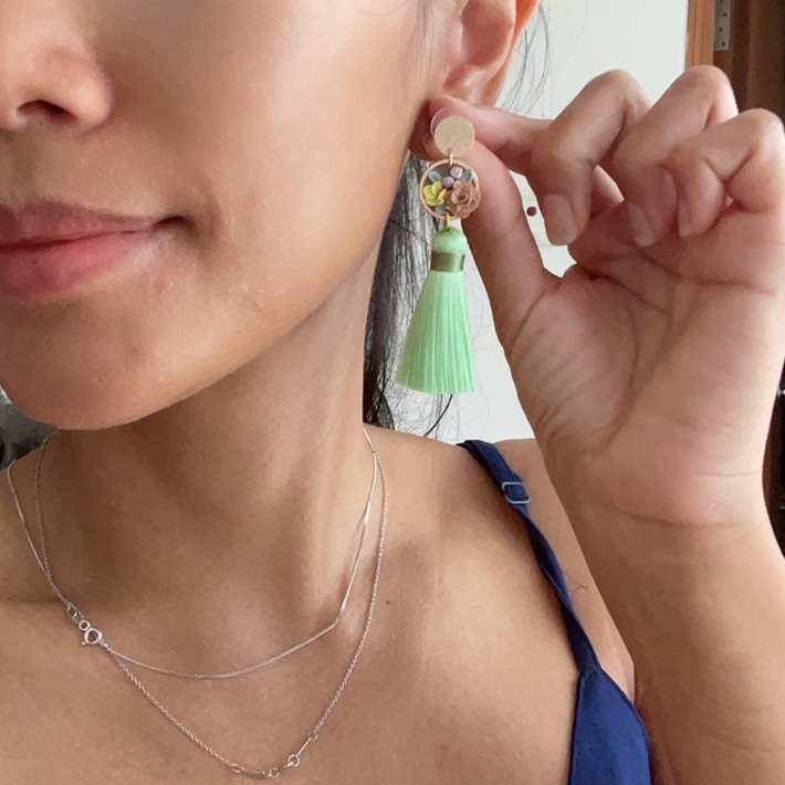 All earrings are handmade, so there's bound to be variations in each piece, making each a unique pair. Please be comfortable with this prior to ordering. Due to different monitors and browsers, actual colours may also vary slightly in colour seen on your monitor.