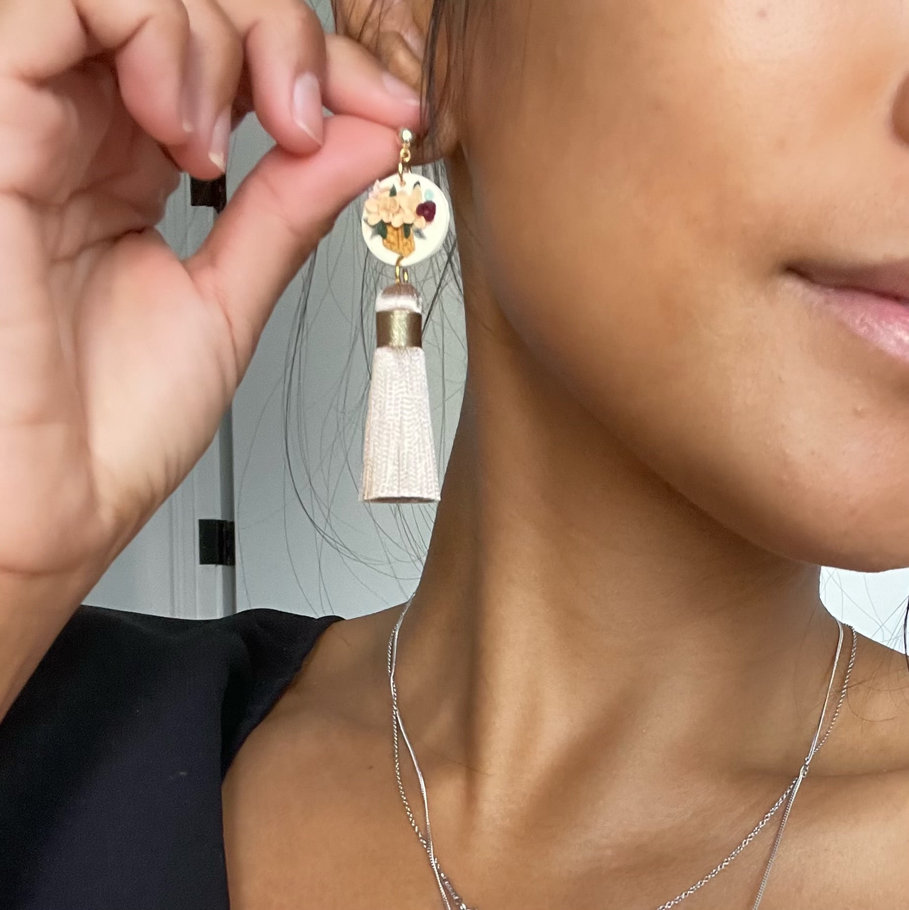 All earrings are handmade, so there's bound to be variations in each piece, making each a unique pair. Please be comfortable with this prior to ordering. Due to different monitors and browsers, actual colours may also vary slightly in colour seen on your monitor.