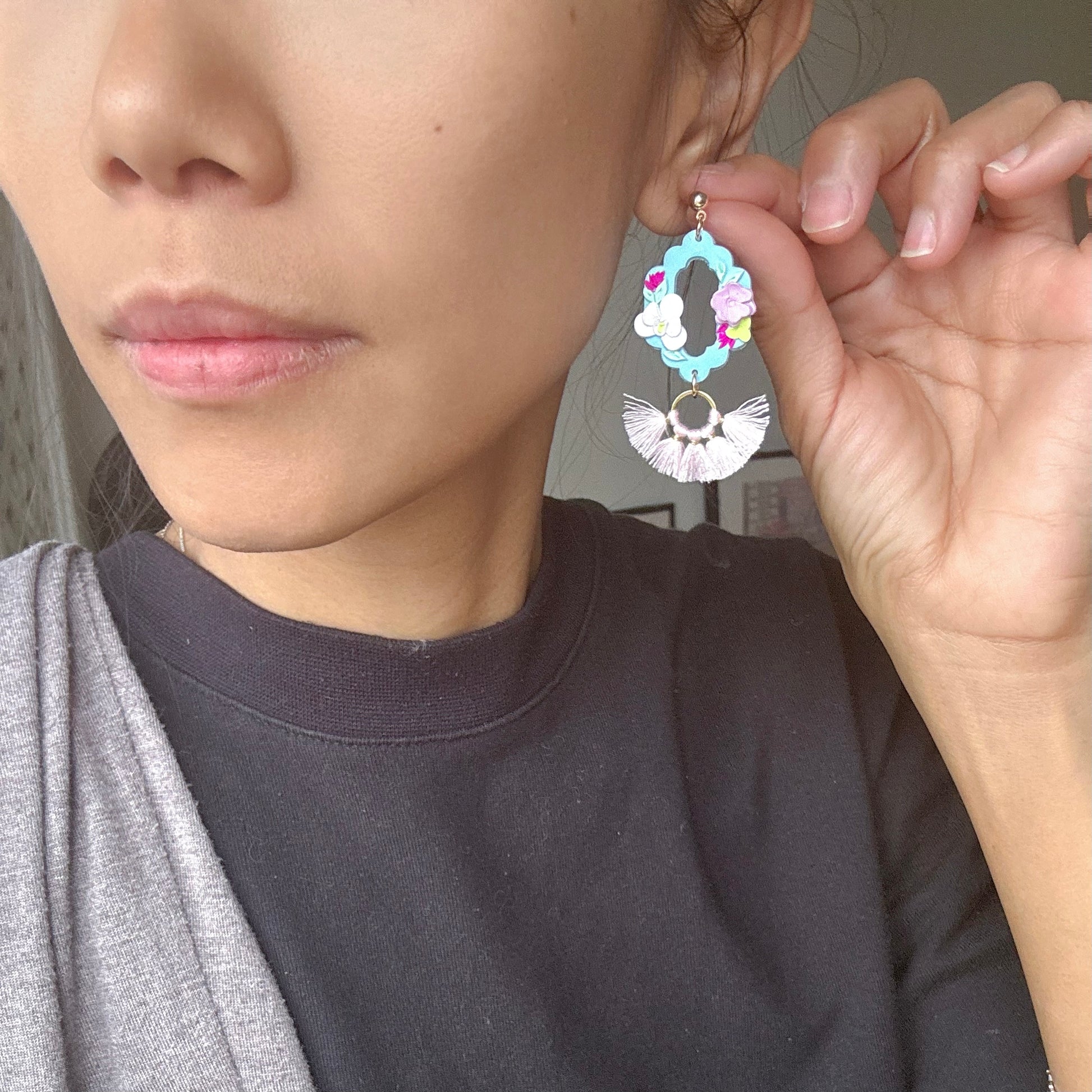All earrings are handmade, so there's bound to be variations in each piece, making each a unique pair. Please be comfortable with this prior to ordering. Due to different monitors and browsers, actual colours may also vary slightly in colour seen on your monitor.