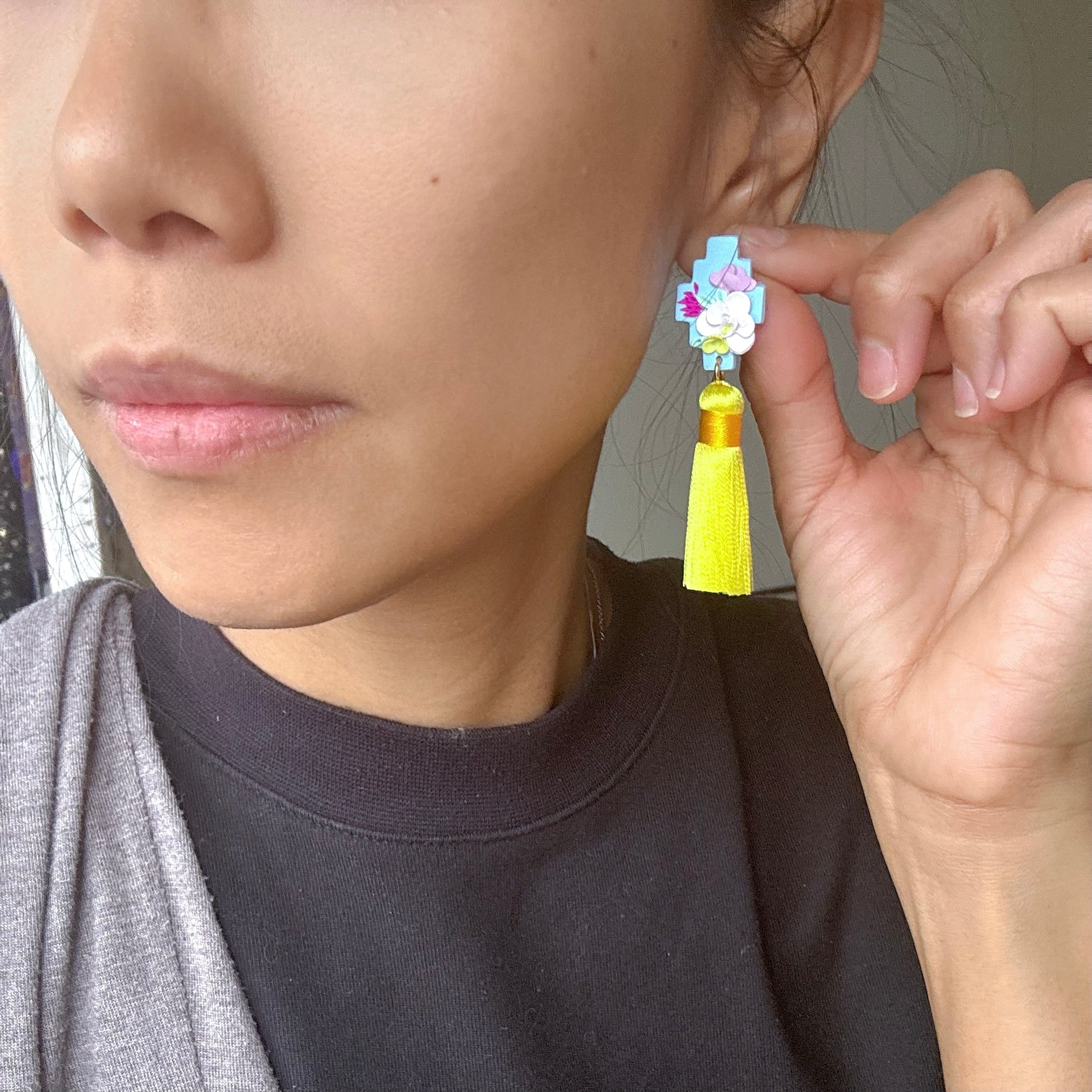 All earrings are handmade, so there's bound to be variations in each piece, making each a unique pair. Please be comfortable with this prior to ordering. Due to different monitors and browsers, actual colours may also vary slightly in colour seen on your monitor.