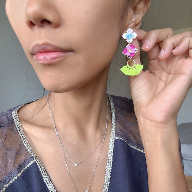 All earrings are handmade, so there's bound to be variations in each piece, making each a unique pair. Please be comfortable with this prior to ordering. Due to different monitors and browsers, actual colours may also vary slightly in colour seen on your monitor.