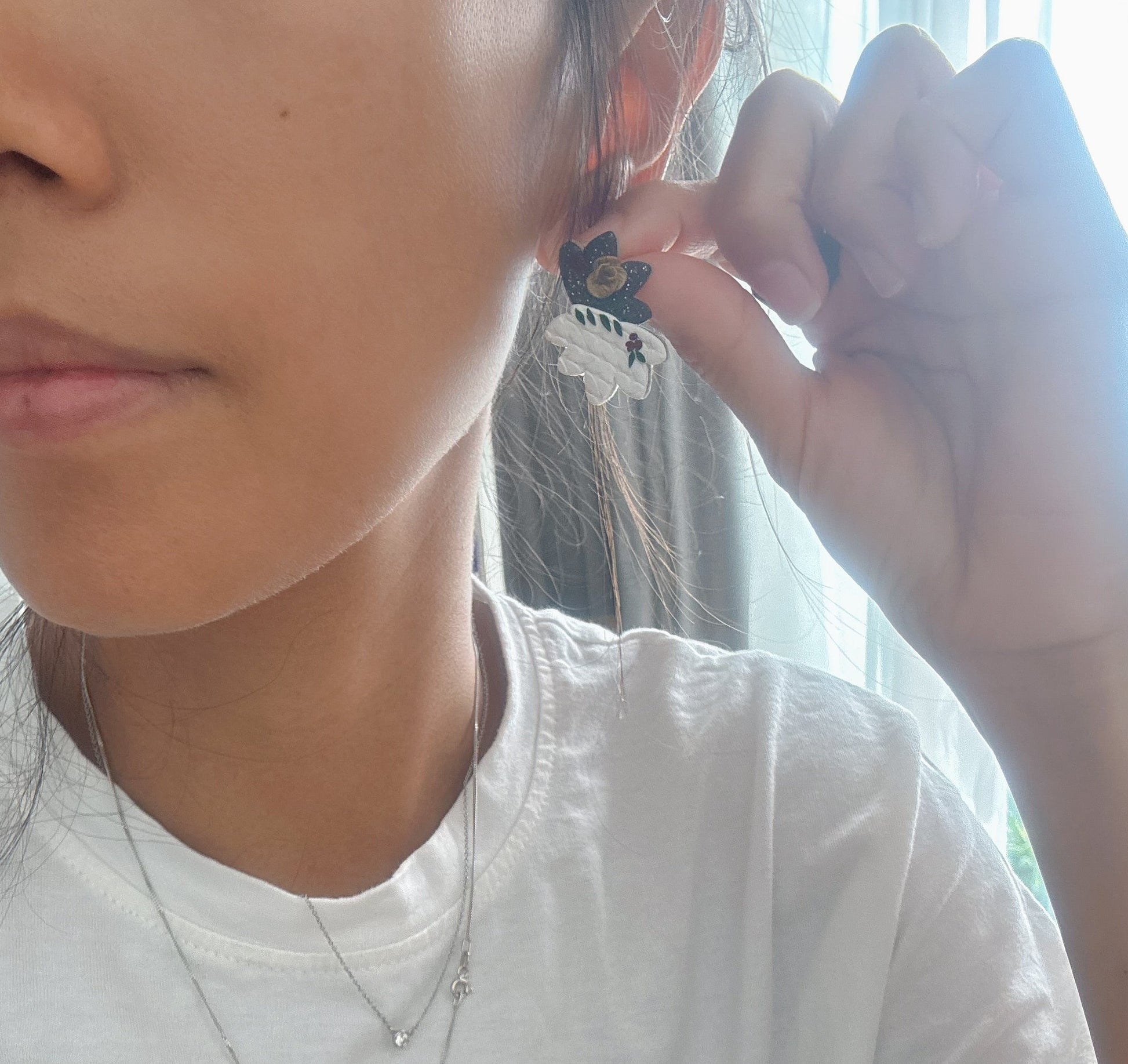 All earrings are handmade, so there's bound to be variations in each piece, making each a unique pair. Please be comfortable with this prior to ordering. Due to different monitors and browsers, actual colours may also vary slightly in colour seen on your monitor.
