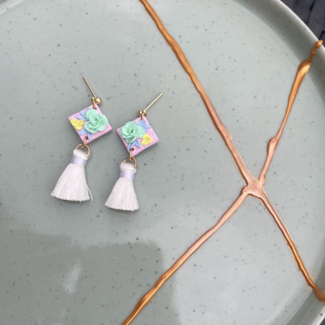 All earrings are handmade, so there's bound to be variations in each piece, making each a unique pair. Please be comfortable with this prior to ordering. Due to different monitors and browsers, actual colours may also vary slightly in colour seen on your monitor.