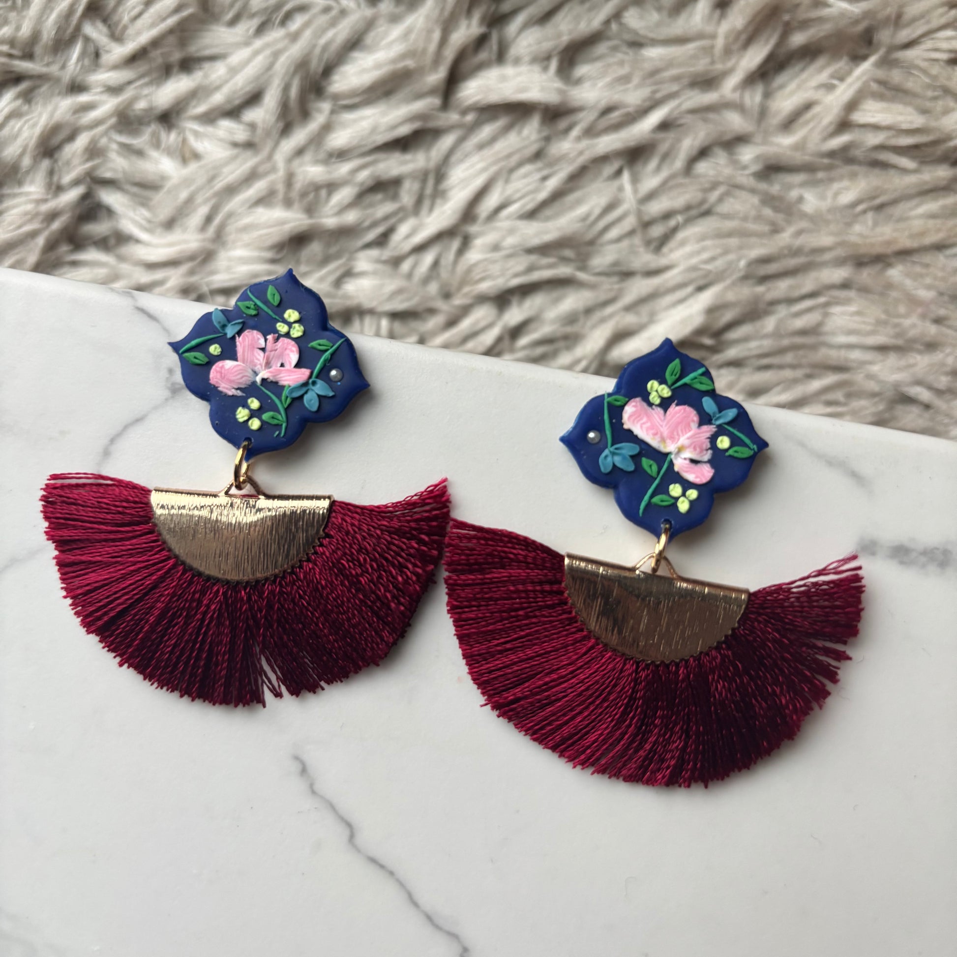 All earrings are handmade, so there's bound to be variations in each piece, making each a unique pair. Please be comfortable with this prior to ordering. Due to different monitors and browsers, actual colours may also vary slightly in colour seen on your monitor.