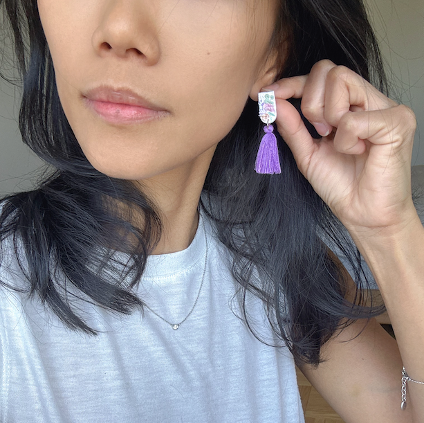 All earrings are handmade, so there's bound to be variations in each piece, making each a unique pair. Please be comfortable with this prior to ordering. Due to different monitors and browsers, actual colours may also vary slightly in colour seen on your monitor.