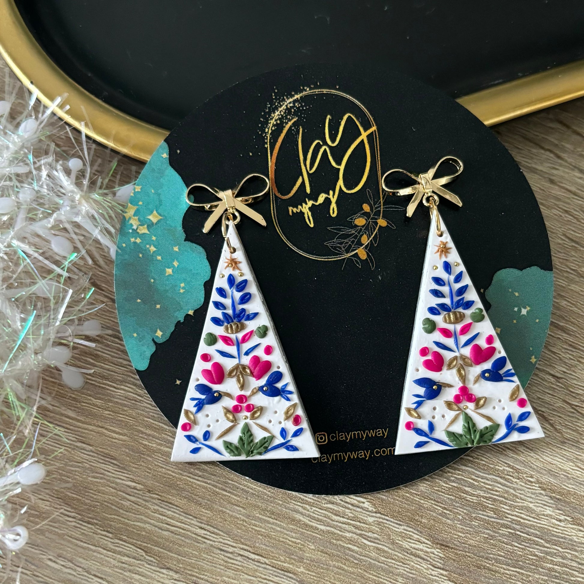 All earrings are handmade, so there's bound to be variations in each piece, making each a unique pair. Please be comfortable with this prior to ordering. Due to different monitors and browsers, actual colours may also vary slightly in colour seen on your monitor.