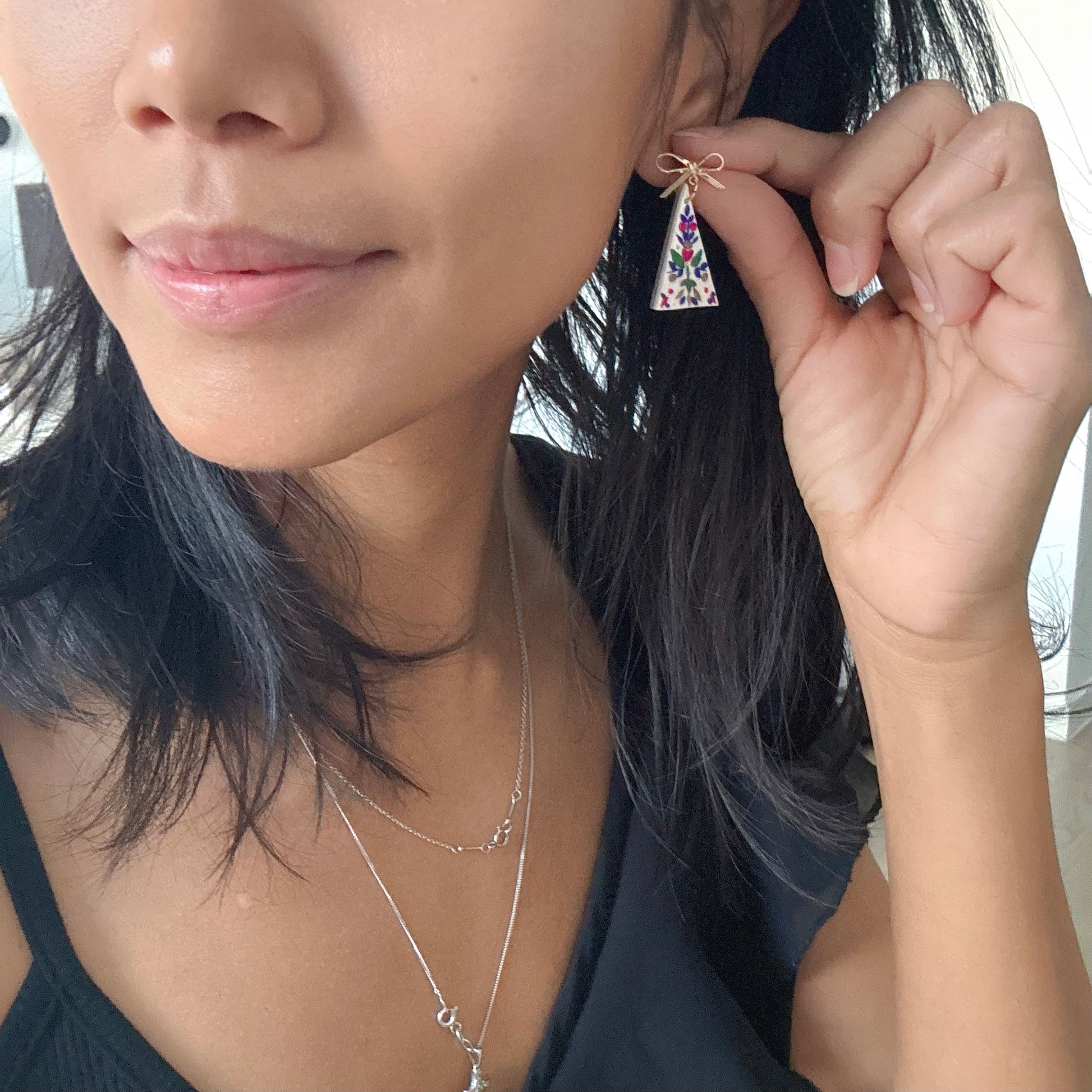 All earrings are handmade, so there's bound to be variations in each piece, making each a unique pair. Please be comfortable with this prior to ordering. Due to different monitors and browsers, actual colours may also vary slightly in colour seen on your monitor.