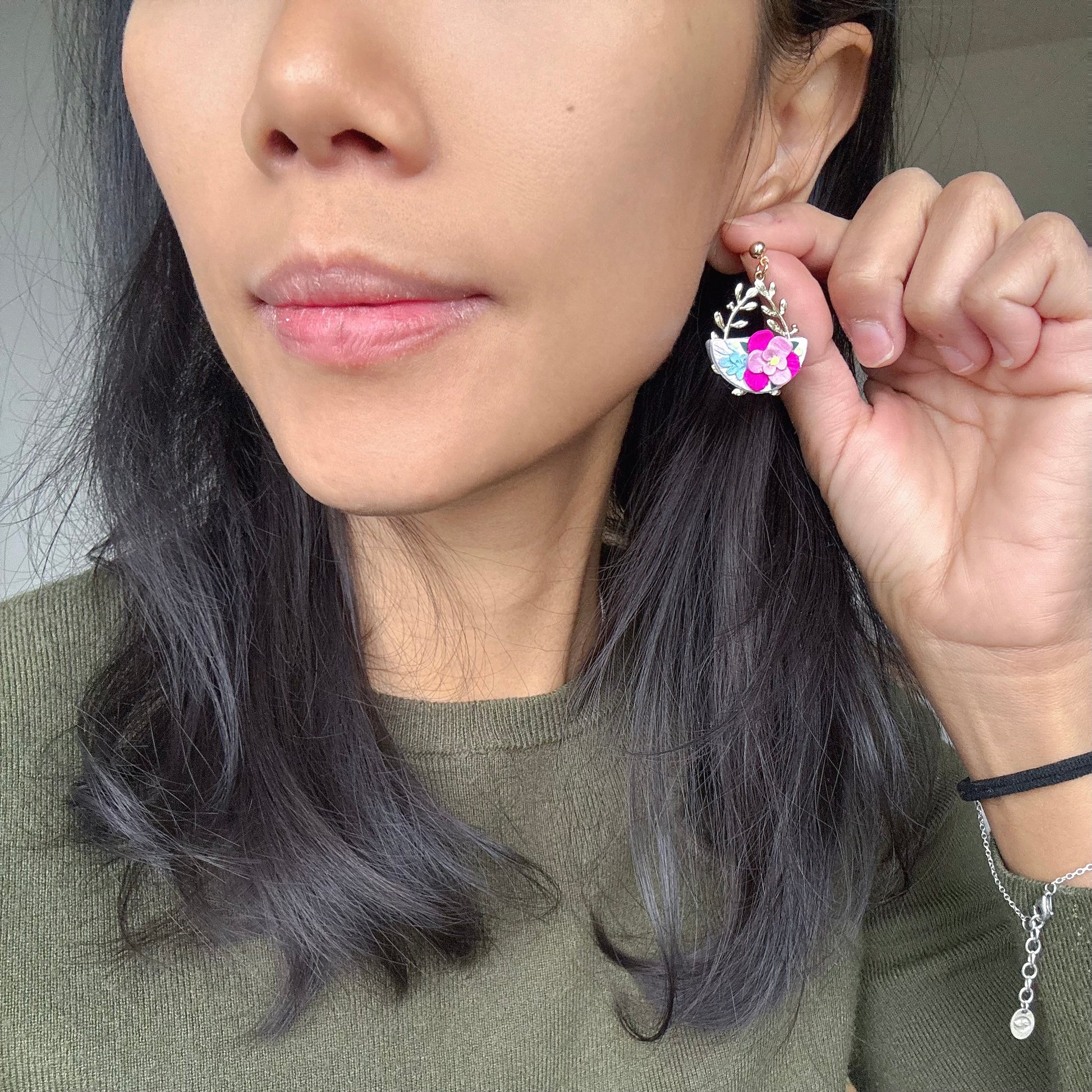 All earrings are handmade, so there's bound to be variations in each piece, making each a unique pair. Please be comfortable with this prior to ordering. Due to different monitors and browsers, actual colours may also vary slightly in colour seen on your monitor.