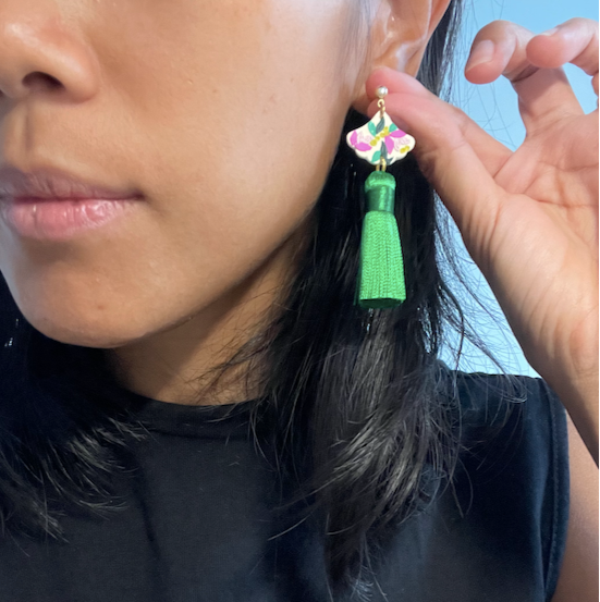 All earrings are handmade, so there's bound to be variations in each piece, making each a unique pair. Please be comfortable with this prior to ordering. Due to different monitors and browsers, actual colours may also vary slightly in colour seen on your monitor.