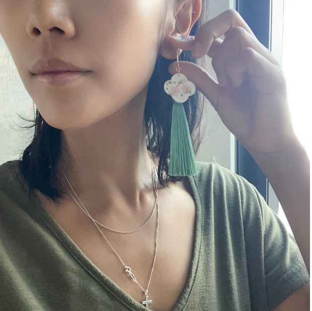 All earrings are handmade, so there's bound to be variations in each piece, making each a unique pair. Please be comfortable with this prior to ordering. Due to different monitors and browsers, actual colours may also vary slightly in colour seen on your monitor.