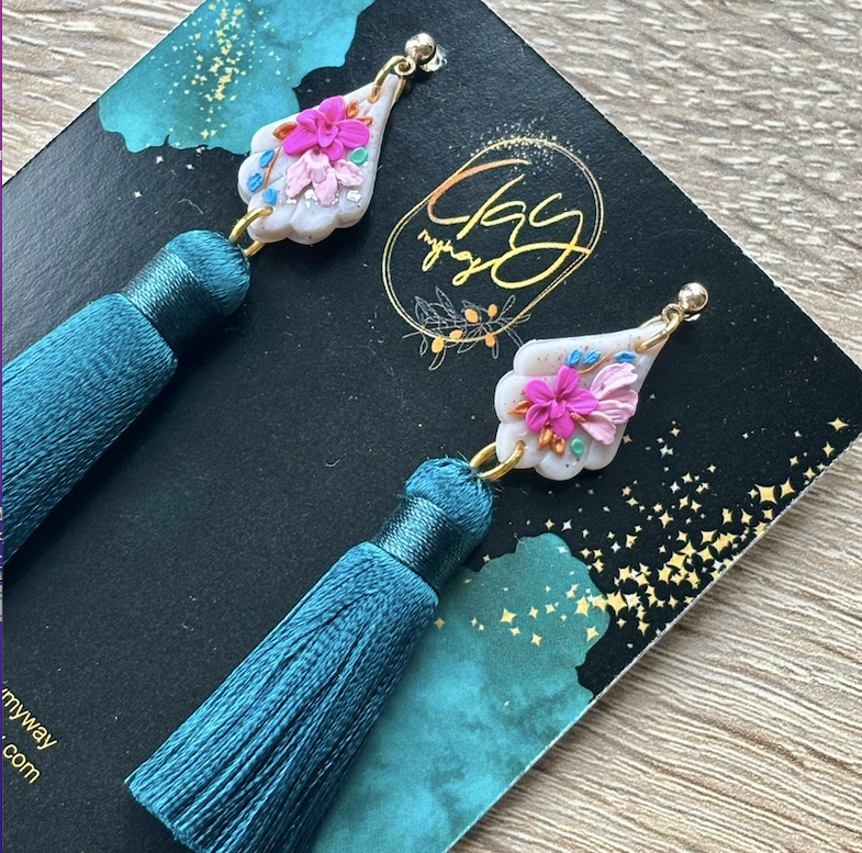 All earrings are handmade, so there's bound to be variations in each piece, making each a unique pair. Please be comfortable with this prior to ordering. Due to different monitors and browsers, actual colours may also vary slightly in colour seen on your monitor.