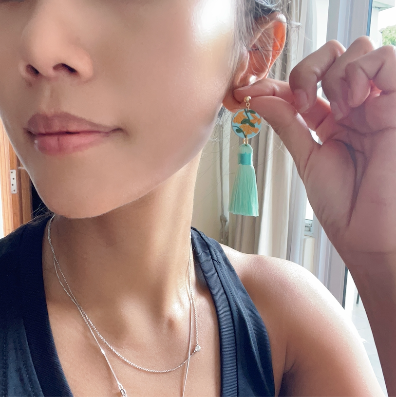 All earrings are handmade, so there's bound to be variations in each piece, making each a unique pair. Please be comfortable with this prior to ordering. Due to different monitors and browsers, actual colours may also vary slightly in colour seen on your monitor.