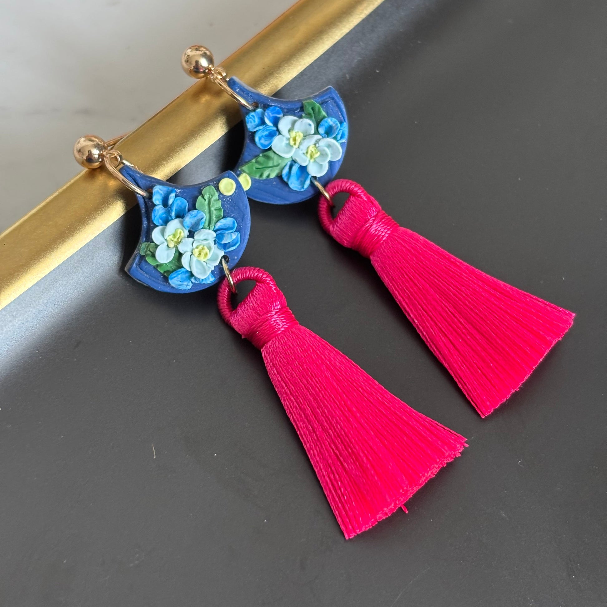 All earrings are handmade, so there's bound to be variations in each piece, making each a unique pair. Please be comfortable with this prior to ordering. Due to different monitors and browsers, actual colours may also vary slightly in colour seen on your monitor.