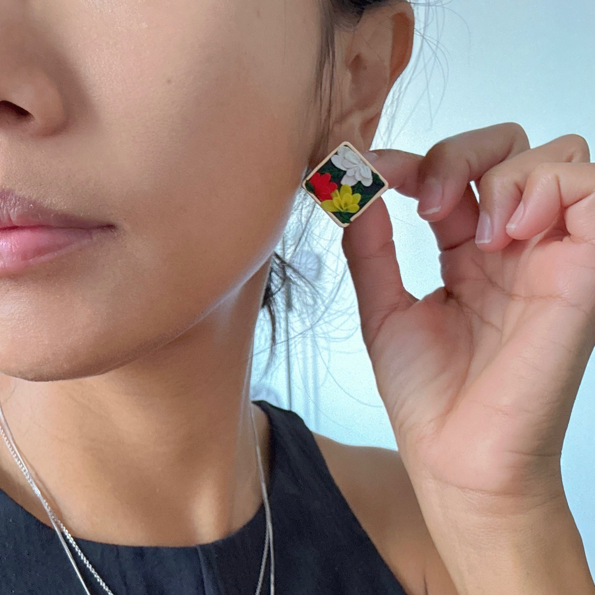 All earrings are handmade, so there's bound to be variations in each piece, making each a unique pair. Please be comfortable with this prior to ordering. Due to different monitors and browsers, actual colours may also vary slightly in colour seen on your monitor.