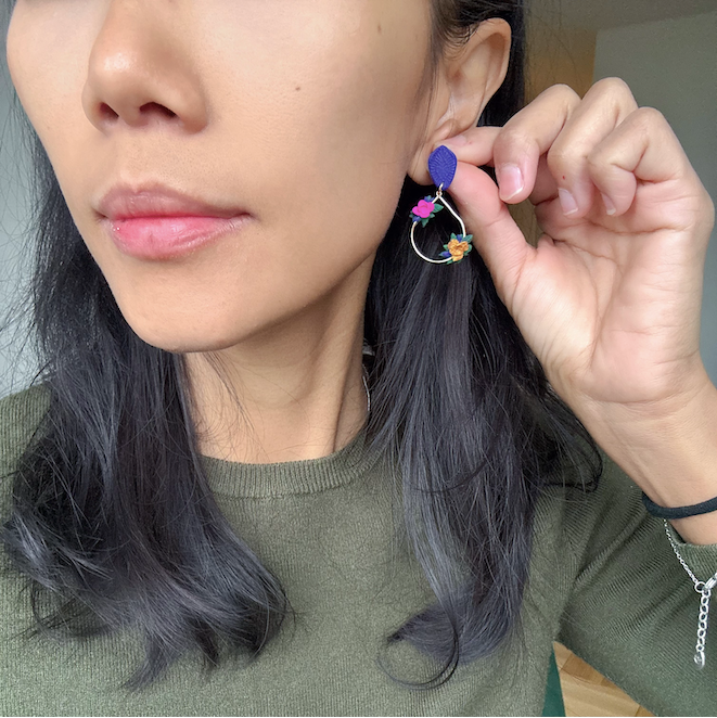 All earrings are handmade, so there's bound to be variations in each piece, making each a unique pair. Please be comfortable with this prior to ordering. Due to different monitors and browsers, actual colours may also vary slightly in colour seen on your monitor.