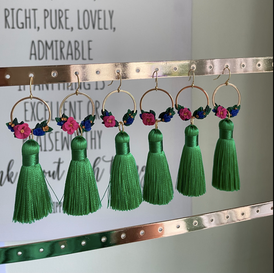 All earrings are handmade, so there's bound to be variations in each piece, making each a unique pair. Please be comfortable with this prior to ordering. Due to different monitors and browsers, actual colours may also vary slightly in colour seen on your monitor.